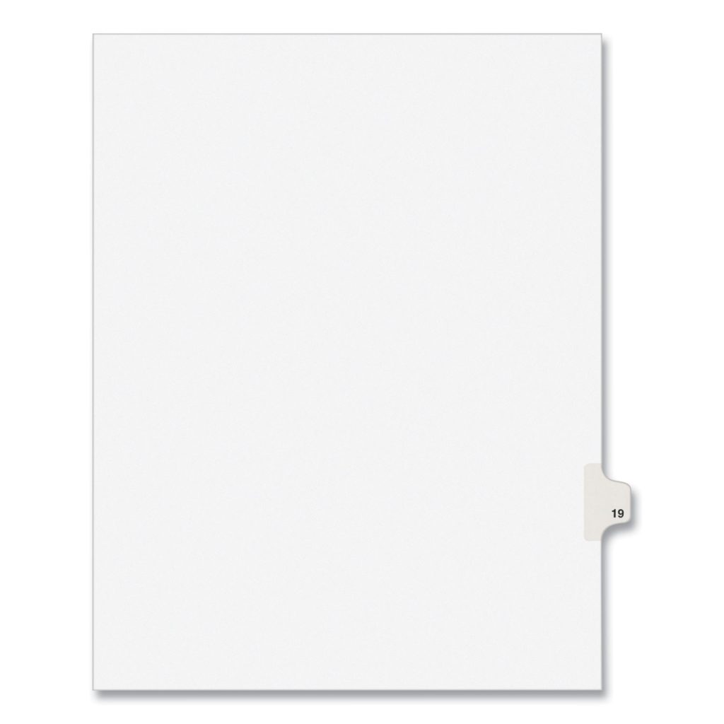 Preprinted Legal Exhibit Side Tab Index Dividers, Avery Style, 10-Tab, 19, 11 x 8.5, White, 25/Pack,