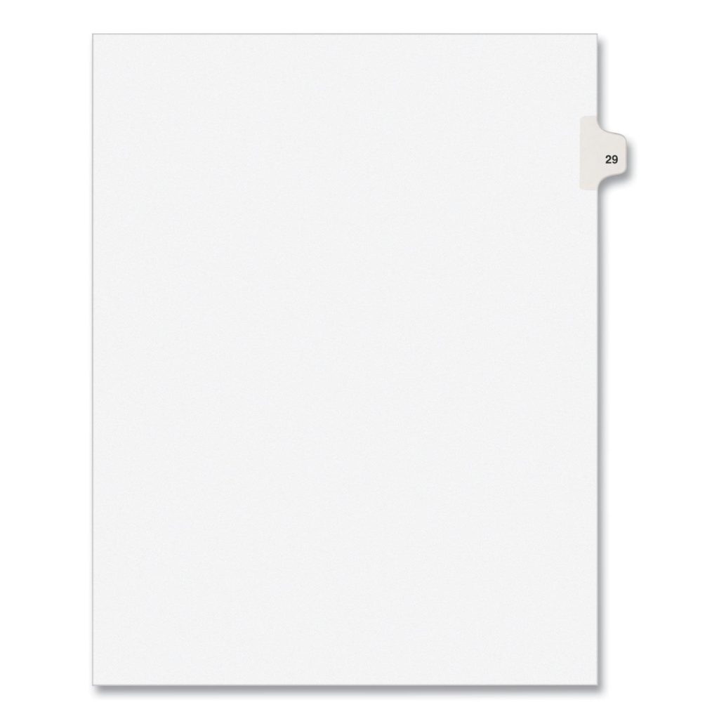 Preprinted Legal Exhibit Side Tab Index Dividers, Avery Style, 10-Tab, 29, 11 x 8.5, White, 25/Pack
