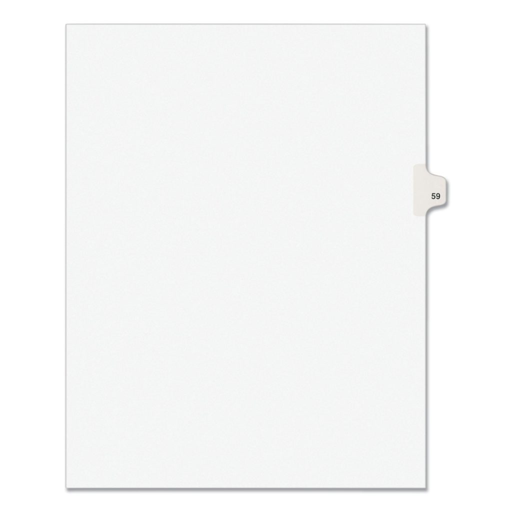 Preprinted Legal Exhibit Side Tab Index Dividers, Avery Style, 10-Tab, 59, 11 x 8.5, White, 25/Pack,