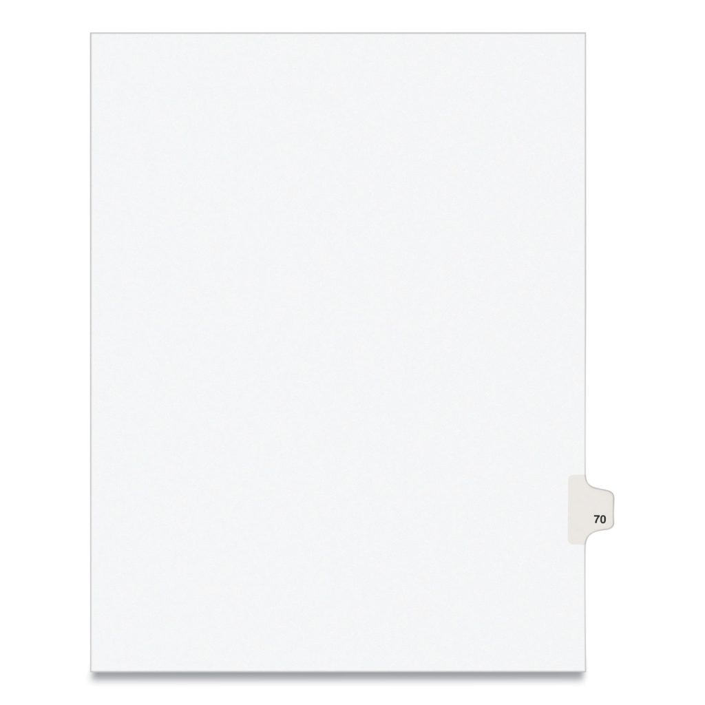 Preprinted Legal Exhibit Side Tab Index Dividers, Avery Style, 10-Tab, 70, 11 x 8.5, White, 25/Pack,
