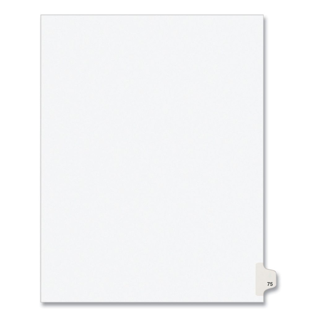 Preprinted Legal Exhibit Side Tab Index Dividers, Avery Style, 10-Tab, 75, 11 x 8.5, White, 25/Pack,