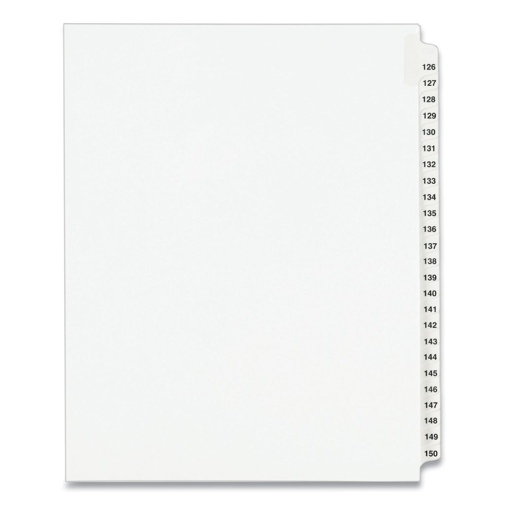 Preprinted Legal Exhibit Side Tab Index Dividers, Avery Style, 25-Tab, 126 to 150, 11 x 8.5, White,