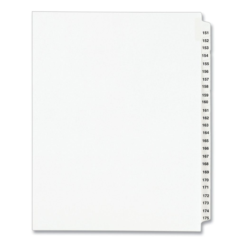 Preprinted Legal Exhibit Side Tab Index Dividers, Avery Style, 25-Tab, 151 to 175, 11 x 8.5, White,