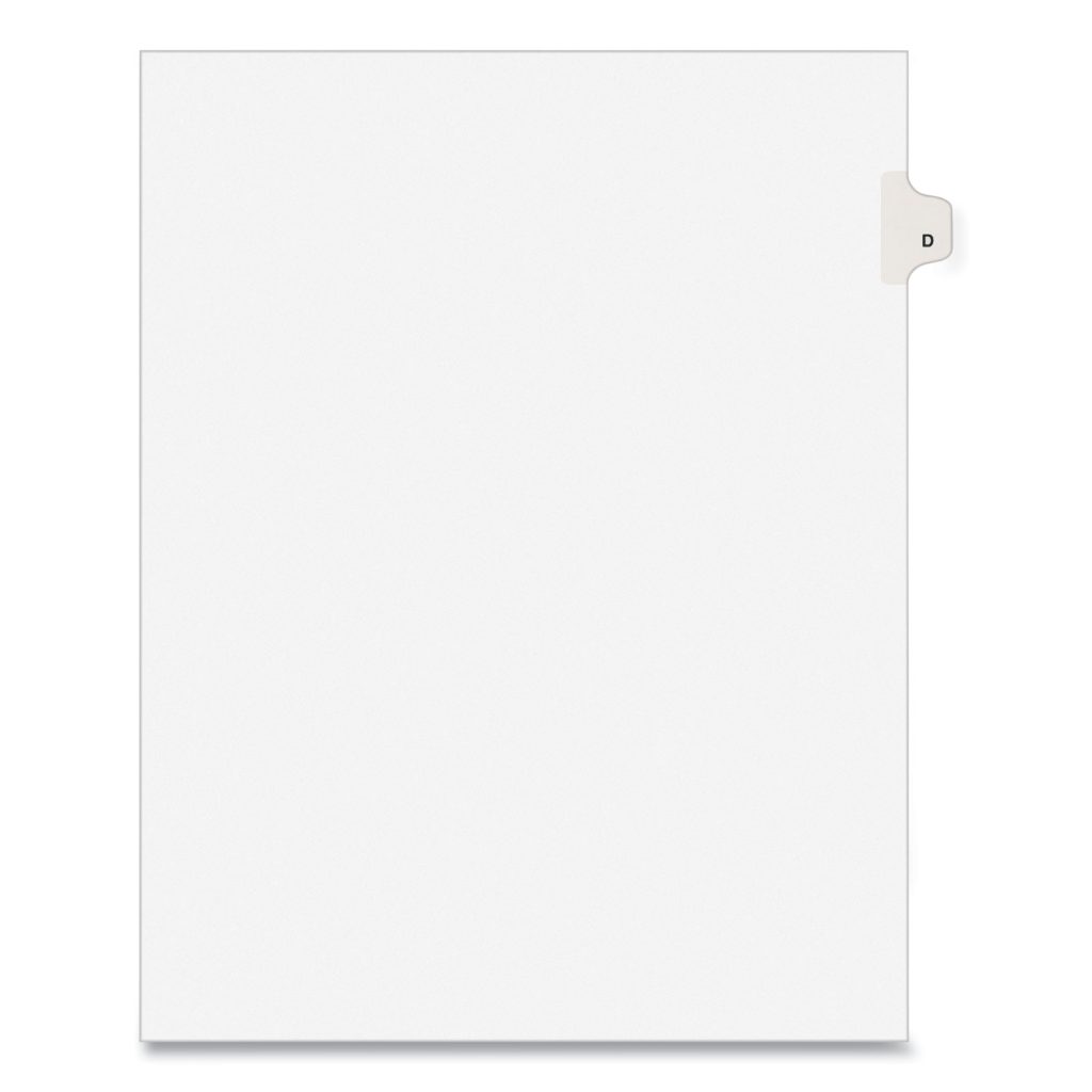 Preprinted Legal Exhibit Side Tab Index Dividers, Avery Style, 26-Tab, D, 11 x 8.5, White, 25/Pack,