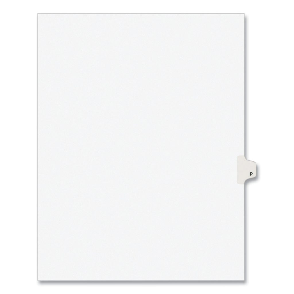 Preprinted Legal Exhibit Side Tab Index Dividers, Avery Style, 26-Tab, P, 11 x 8.5, White, 25/Pack,