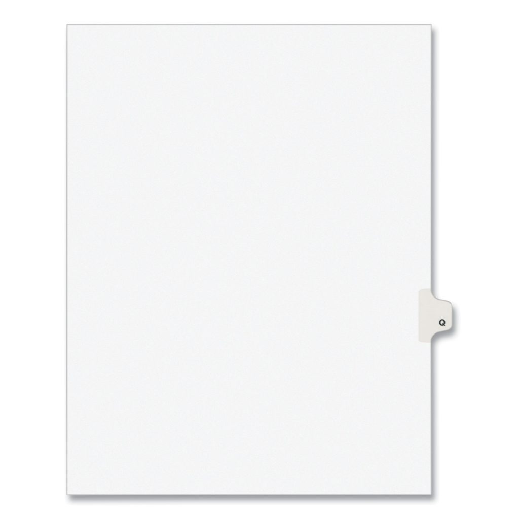 Preprinted Legal Exhibit Side Tab Index Dividers, Avery Style, 26-Tab, Q, 11 x 8.5, White, 25/Pack,
