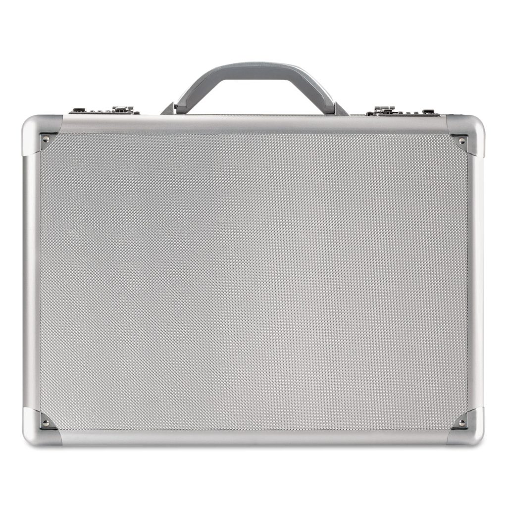 17.3″ laptop compartment with adjustable spacers. Interior organizer section. File compartment. Dual combination locks. Sturdy carry handle. For Use With: Laptops; Color(s): Titanium; Color Family: Silver; Material(s): Aluminum.