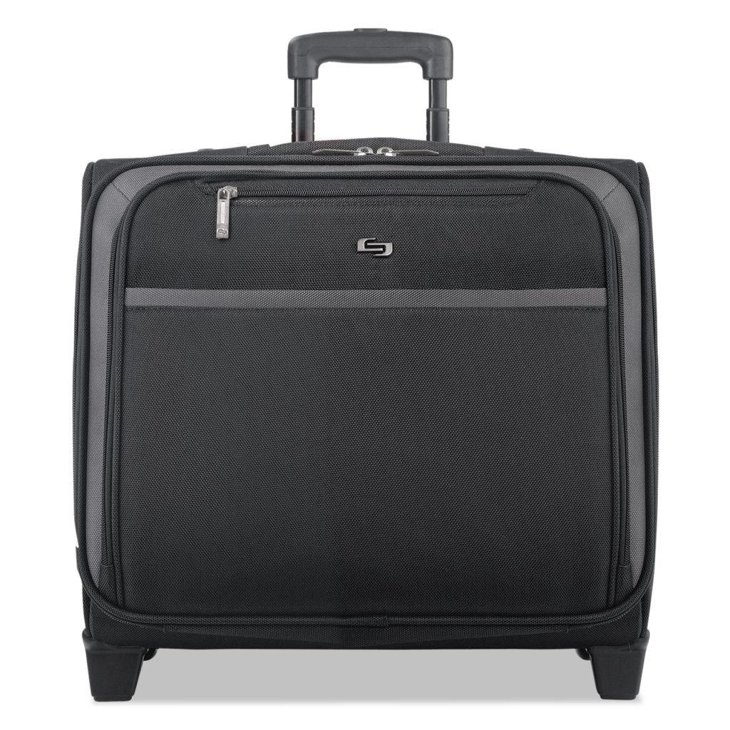 Removable padded sleeve protects laptops up to 16″. CheckFast sleeve design allow you to pass through airport security faster. Full size front zip-down organizer and divided file compartment. Overnighter section. For Use With: Laptops; Color(s): Black; Color Family: Black; Material(s): Polyester.