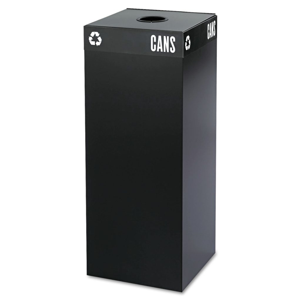 Encourage recycling in every workspace setting with these high capacity recycling receptacles. Attractive heavy-gauge steel containers feature a protective powder coat finish for durability. Interior catch-wires conveniently secure plastic liners in place. (Slotted lids and liners sold separately.) Different heights allow for easy configuration and visibility. Waste Receptacle Type: Indoor Recycling Bin; Material(s): Steel; Application: Recycling Aluminum Cans; Capacity (Volume): 37 gal.