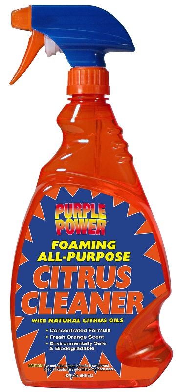 Purple Power Citrus cleaner is a powerful auto/shop degreaser. The concentrated formula uses natural citrus oils to quickly power away tough grease and grime. This citrus cleaner is an environmentally safe and biodegradable natural cleaner and deodorizer.