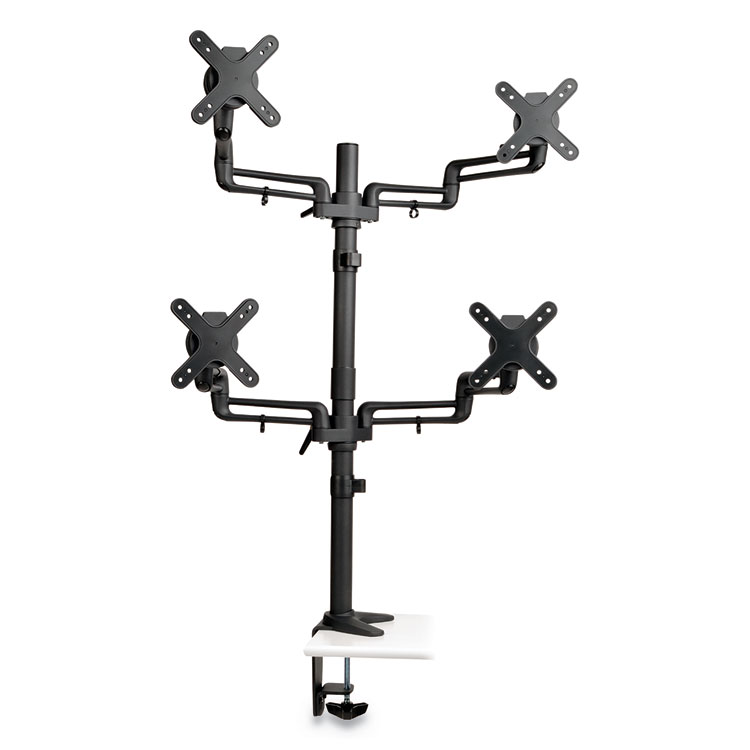 Quad Monitor Mount, For 13″ to 27″ Monitors, 360 deg Rotation, +15 deg/-15 deg Tilt, 180 deg Pan, Bl