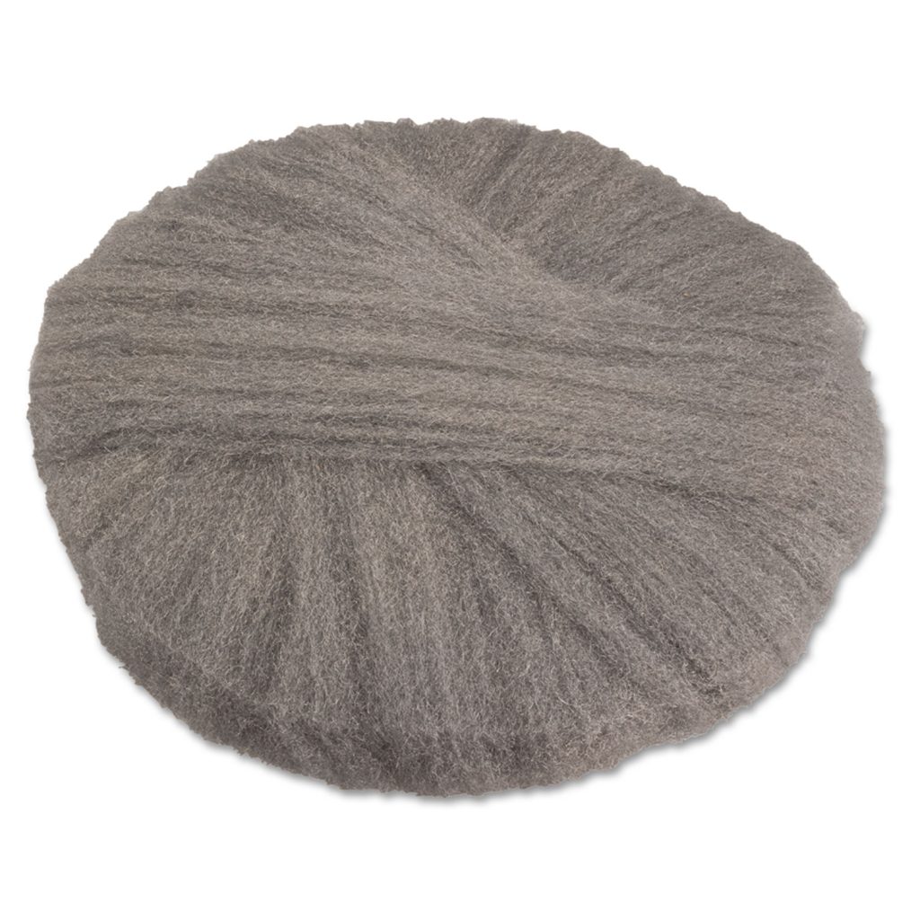 Thick and fluffy pads provide superior polishing performance. Fibers effectively act like thousands of tiny planes, ensuring gentle, uniform abrasion. Extra-porous wool traps removed finish and evenly distributes polishing compounds. Ultra-durable, low-carbon steel wool holds up under the most extreme application conditions. Grade 2Coarse. Application: Stripping; Diameter: 17″; Color(s): Gray; Color Family: Gray.