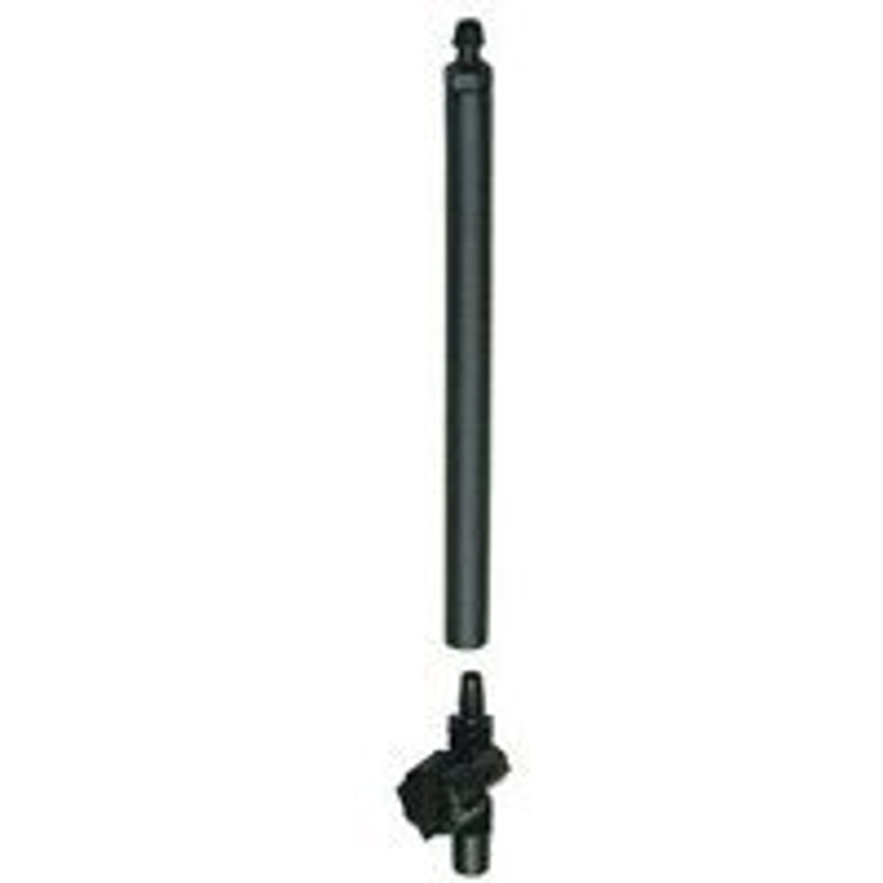 Adjustable mister and 4 in high-density polyethylene riser with 1/4 in barbed adaptors. Adjustable from fine to heavy mist up to 3 ft Dia. Flow rate 4 to 7 gph at 25 psi.