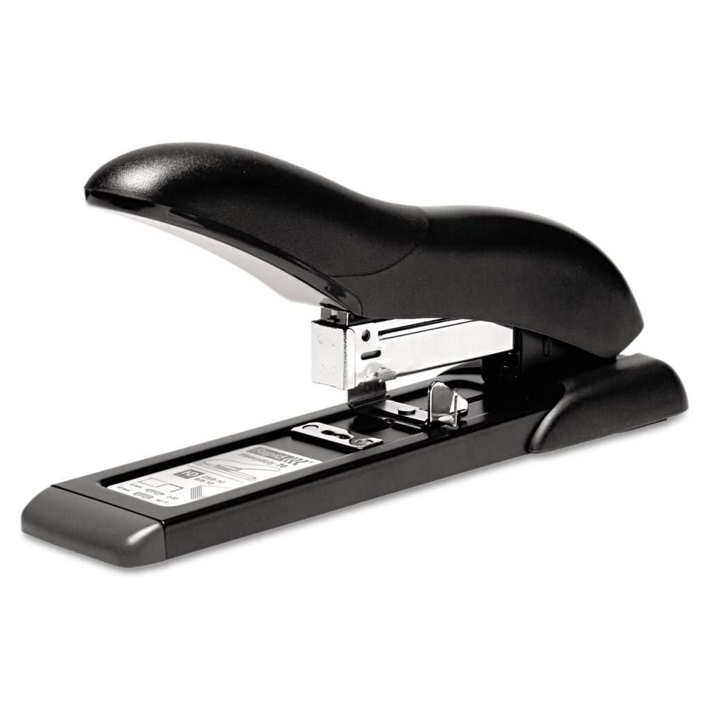 Rapid Heavy Duty Stapler HD80 – 80 Sheets Capacity – 3/8″ , 1/2″ , 1/4″ Staple Size – Black| Compact, lightweight, heavy-duty stapler is made using recycled plastic and fastens up to 80 sheets. The leverage mechanism is optimized for high-capacity stapling, requiring less effort to use while providing a jam-free operation. Rubber base provides stability, and an adjustable throat allows deep stapling. Stapler uses any 1/4″ , 3/8″ and 1/2″ heavy-duty staples (sold separately).Compact, lightweight, heavy-duty stapler is made using recycled plastic and fastens up to 80 sheets. The leverage mechanism is optimized for high-capacity stapling, requiring less effort to use while providing a jam-free operation. Rubber base provides stability, and an adjustable throat allows deep stapling. Stapler uses any 1/4″ , 3/8″ and 1/2″ heavy-duty staples (sold separately).