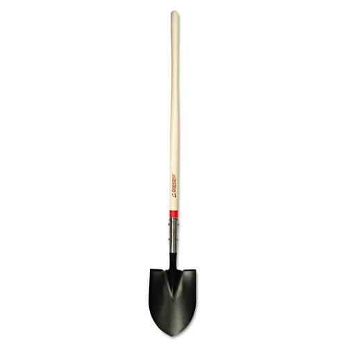 The RAZOR-BACK round point shovel is tough enough to dig in the hardest, rockiest soil. It features a heavy-duty, closed back, industrial gauge, steel blade with a closed back design to eliminate soil build-up. The 11 in extended socket with dual rivet connection reduces handle breakage. The 48 in North American hardwood handle provides ultimate strength and durability to withstand heavy-duty labor.