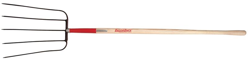 RAZOR-BACK 73141 Barley Fork, Oval Tine, Steel Tine, Wood Handle, Straight Handle, 63-1/2 in L Handl