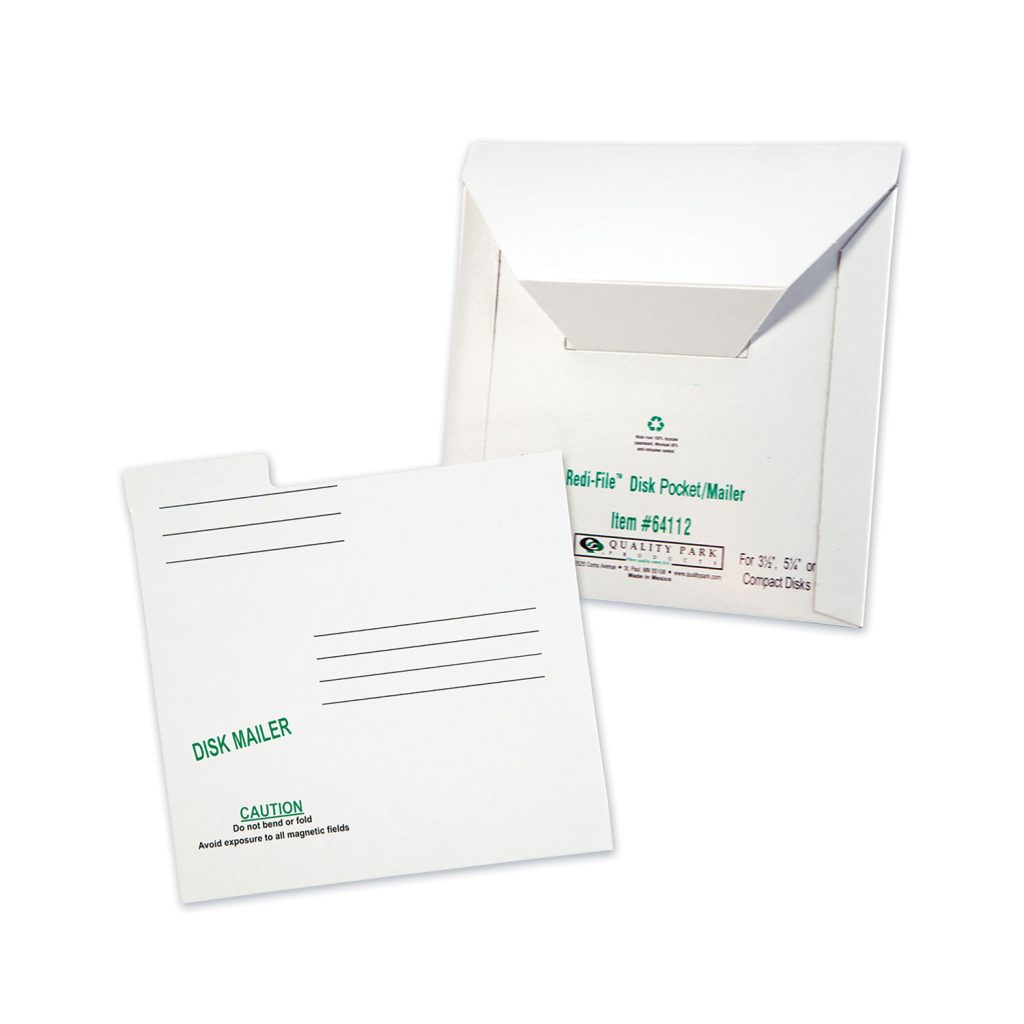 Redi-File Disk Pocket/Mailer, CD/DVD, Square Flap, Perforated Flap Closure, 6 x 5.88, White, 10/Pack