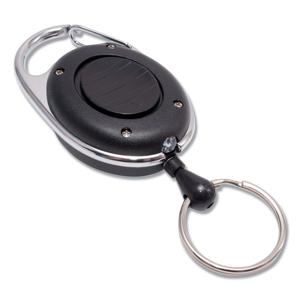 Carabiner badge reel comes in handy when you need to show your badge in dimly lit areas or when you just need a little extra light. LED light is at base of reel and turns on and off with the slide of your thumb. Clips securely around belt loops, bags and purse straps. Cord Material(s): Nylon; Cord Length: 24″; Reel Frame Material(s): Plastic; Color(s): Black.