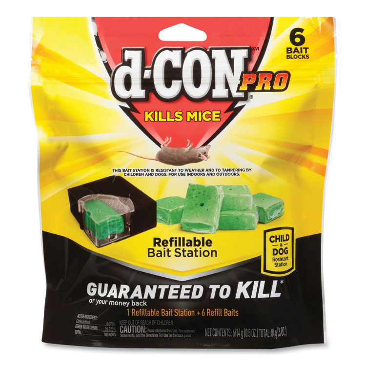 This refillable bait station is ready to gono work necessary on your part. Product is weather-, child- and dog-resistant, so it’s safe to use around your home. Good for both indoor and outdoor use. Its low profile makes it an excellent choice for discreet usage and for use in high traffic areas. 6 Refills. Rodent Control Product Type: Poison; Application: Indoor/Outdoor; Target: Mice; Dimensions: 3″ x 3″ x 1 1/4″.