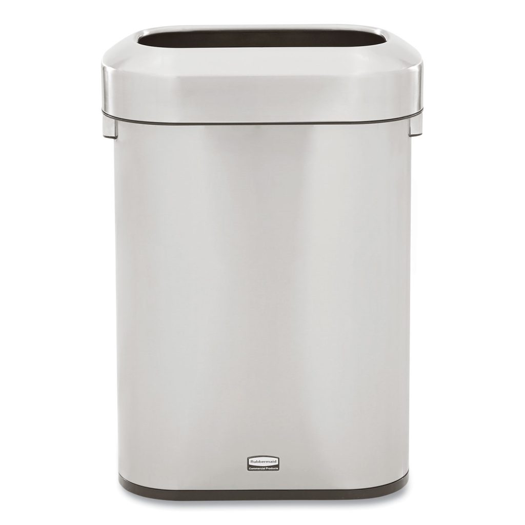 Featuring a classic design and fingerprint-resistant stainless steel, the Refine waste container fits seamlessly into any commercial space for a discreet look that enhances the overall environment. Integrated handles improve grip and ergonomics, reducing user strain and improving efficiency when emptying containers. Commercial grade material is durable and ensures the receptacle withstands the rigors of everyday use. Anti-skid feet ensure the surrounding environment stays beautiful. Waste Receptacle Type: Indoor All-Purpose Waste Bin; Material(s): Plastic; Stainless Steel; Application: Indoor All-Purpose Waste Disposal; Capacity (Volume): 15 gal.