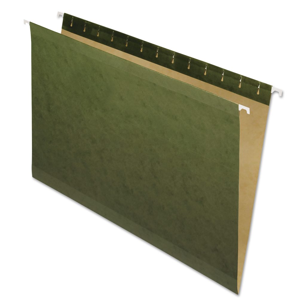 Reinforced Hanging File Folders, Legal Size, Straight Tab, Standard Green, 25/Box