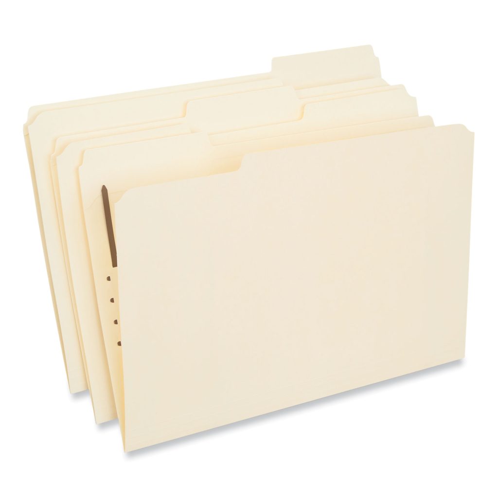 Secure important documents with 2″ capacity embedded fasteners. Reinforced tabs add extra durability where it’s needed most. Scored for 3/4″ expansion. File Folder Size Type: Legal; File Folder Color: Manila; Color Family: Manila; File Folder Material: 11-pt Manila.