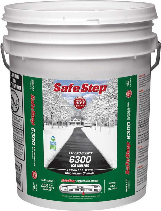 Safe Step Enviro-Blend 6300 is safer to people, pets and vegetation when used as directed, but has a melting power that outperforms other ice melter blends. The patented formula contains our powerful melting catalyst, MG 104, which helps prevent refreezing up to 2.5X longer than conventional products.
