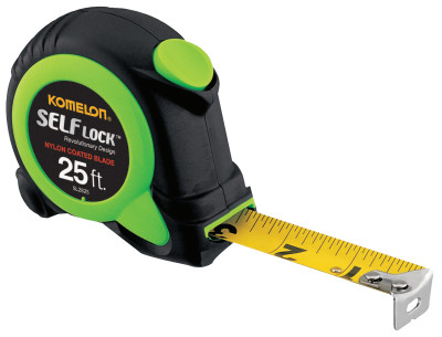 Self Lock Measuring Tape, 1 in x 25 ft, Green/Black