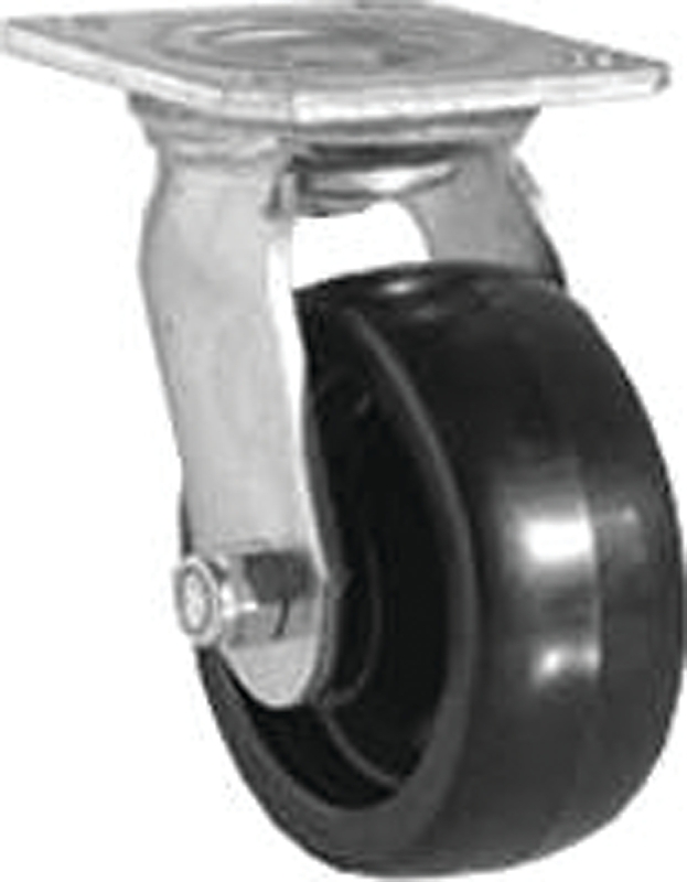 Long wearing, low-cost, lightweight and non-marking wheels with good chemical resistance, impervious to water for most general medium heavy-duty industrial applications such as platform trucks, wire shelving and other warehouse trucks and carts for commercial use. Use in acid, oil or water and on carpet or concrete. 4 x 4-1/2 in plate size.