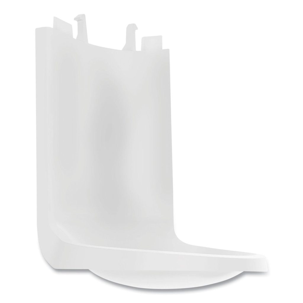 Protector attachment for bottom of dispenser protects floors and walls against splashes and drips caused by typical use. Attaches to CS and ES dispensers and is easy to install. Mounts to wall with adhesive tape (included) or optional mounting screws (not included). For Use With: PURELL ES and CS Hand Sanitizer Dispensers; Color(s): White; Size: 4.68 x 5.98 x 3.86.