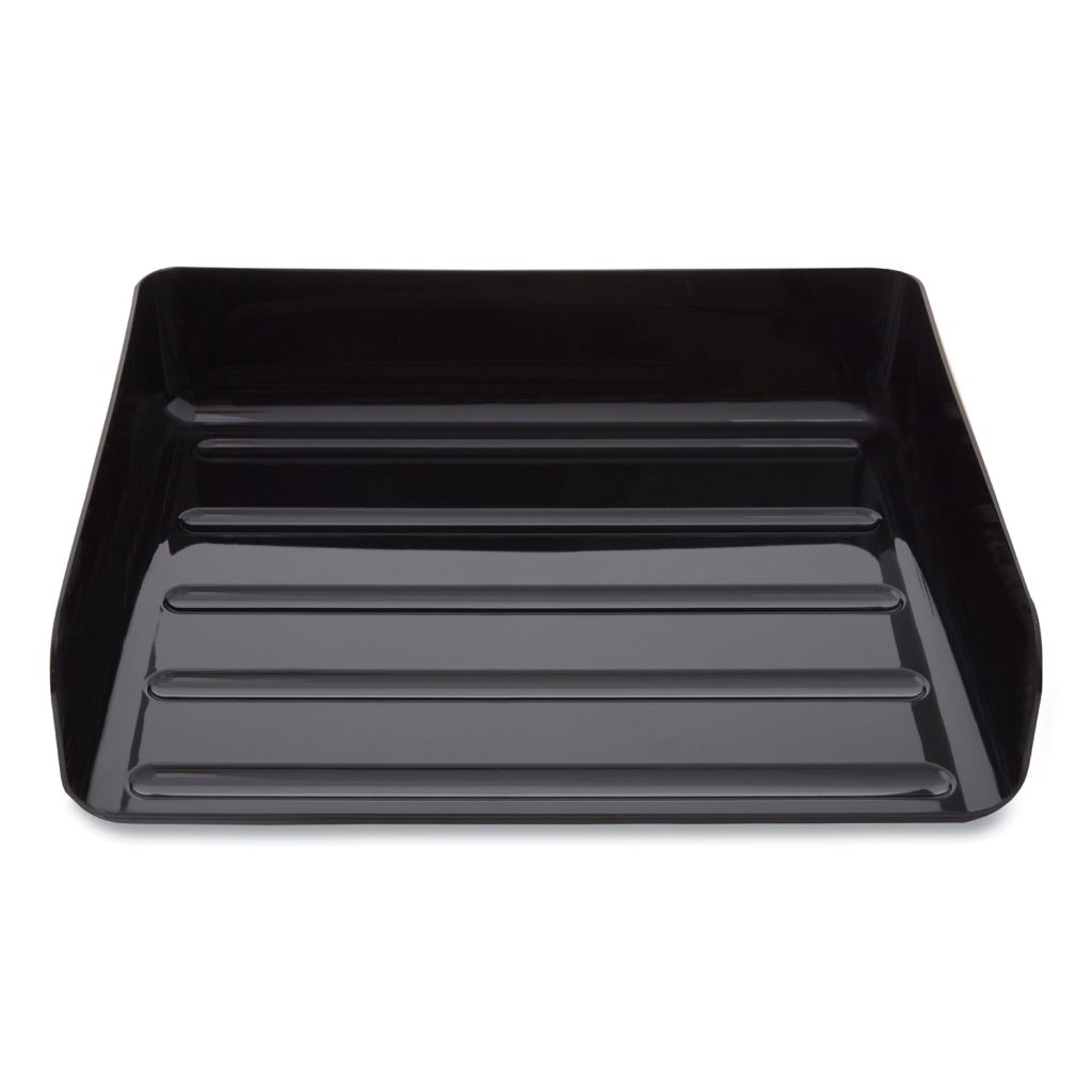Master the art of desktop organization, and sort all of your paperwork by priority or project to enhance your productivity. Stacking design allows you to develop a personalized desktop setup. Gloss-finished body provides a contemporary appearance that integrates easily into modern office environments. Crack- and break-resistant plastic stands up to the rigors of regular use. Side-Load. Number of Compartments: 1; For File Size: Letter; Load Orientation: Side; Color(s): Black.