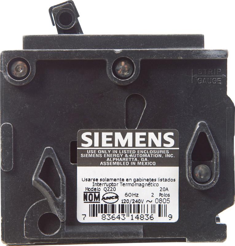 Siemens Q220 Circuit Breaker, Miniature, 20 A, 2-Pole, 120/240 V, Fixed Trip, Plug-In Mounting