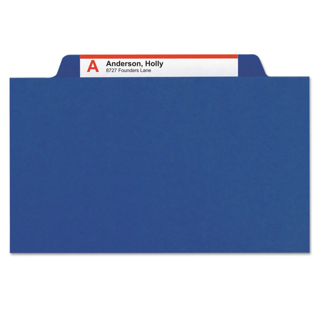 The ultimate classification folder when safety and security are most important. SafeSHIELD bonded fasteners add protection for papers and fingers, while also reducing fastener crinkling. Made of pressboard for extra durability. Variety of colors for color-coding projects. Folder Size: Letter; Total Number of Dividers: 2; Total Number of Fasteners: 6; Max Folder Expansion: 2″.