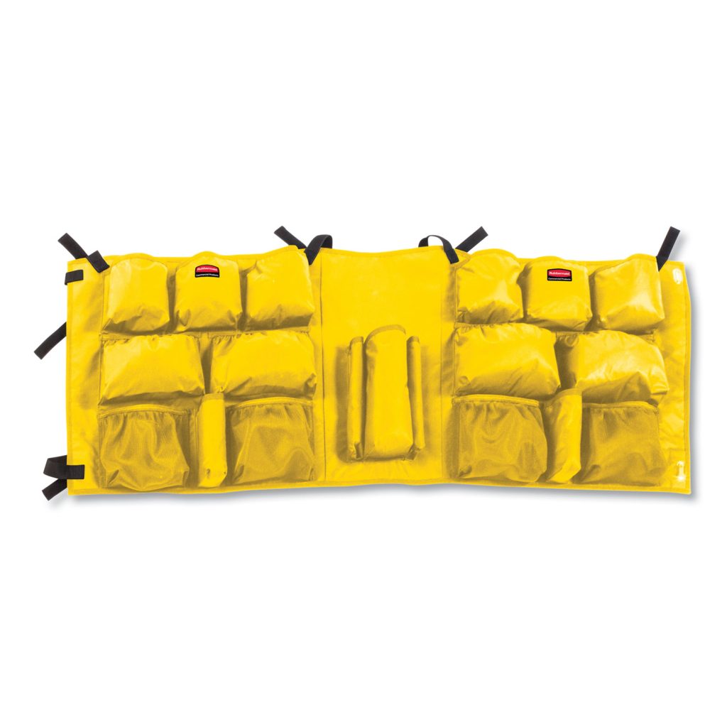 The Slim Jim caddy bag paired with the slim profile of a Slim Jim container allows for easy maneuvering in the tightest spaces. Features 19 pockets to store and transport common cleaning tools for quick cleanups and mobile waste collection. Diameter: 19″; Height: 19″; Width: 10.25″; For Use With: Slim Jim 23-Gallon Containers.