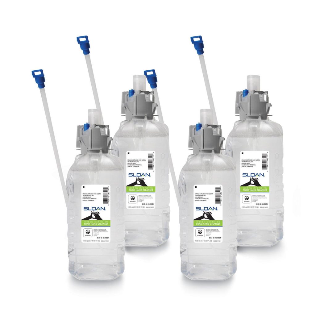 SLOAN Green Certified Foam hand cleaner is a mild foam soap formula for general use. Sanitary Sealed refill helps prevent contamination. Dermatologist tested. Soap Type: Foam; Application: Hand; Capacity (Volume): 1,500 mL; Scent: Fragrance-Free.