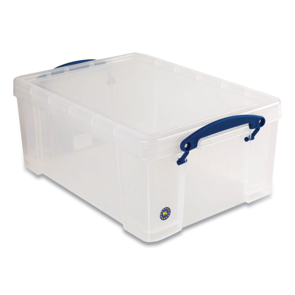 Store files, sports equipment, toys, bedding, decorations, office supplies and more. Made of durable polypropylene, this bin features reinforced sides for enhanced compression strength, so that it maintains its shape when stacked. Flat bottom and recessed, flat lid deliver increased rigidity, while ensuring stacking stability. Snap-tight lock closes with a satisfying, audible snap to let you know that your bin’s lid is properly fit. Clear body allows you to check your bin’s contents with having to open it. Number of Compartments: 1; Capacity (Volume): 2.37 gal; Material Family: Plastic; Material(s): Plastic.