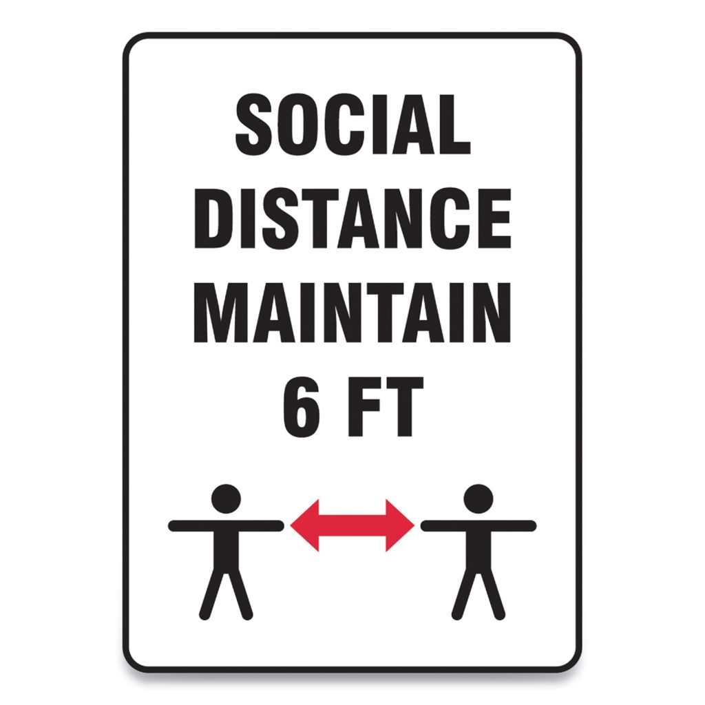 Social Distance Signs, Wall, 7 x 10, “Social Distance Maintain 6 ft”, 2 Humans/Arrows, White, 10/Pac