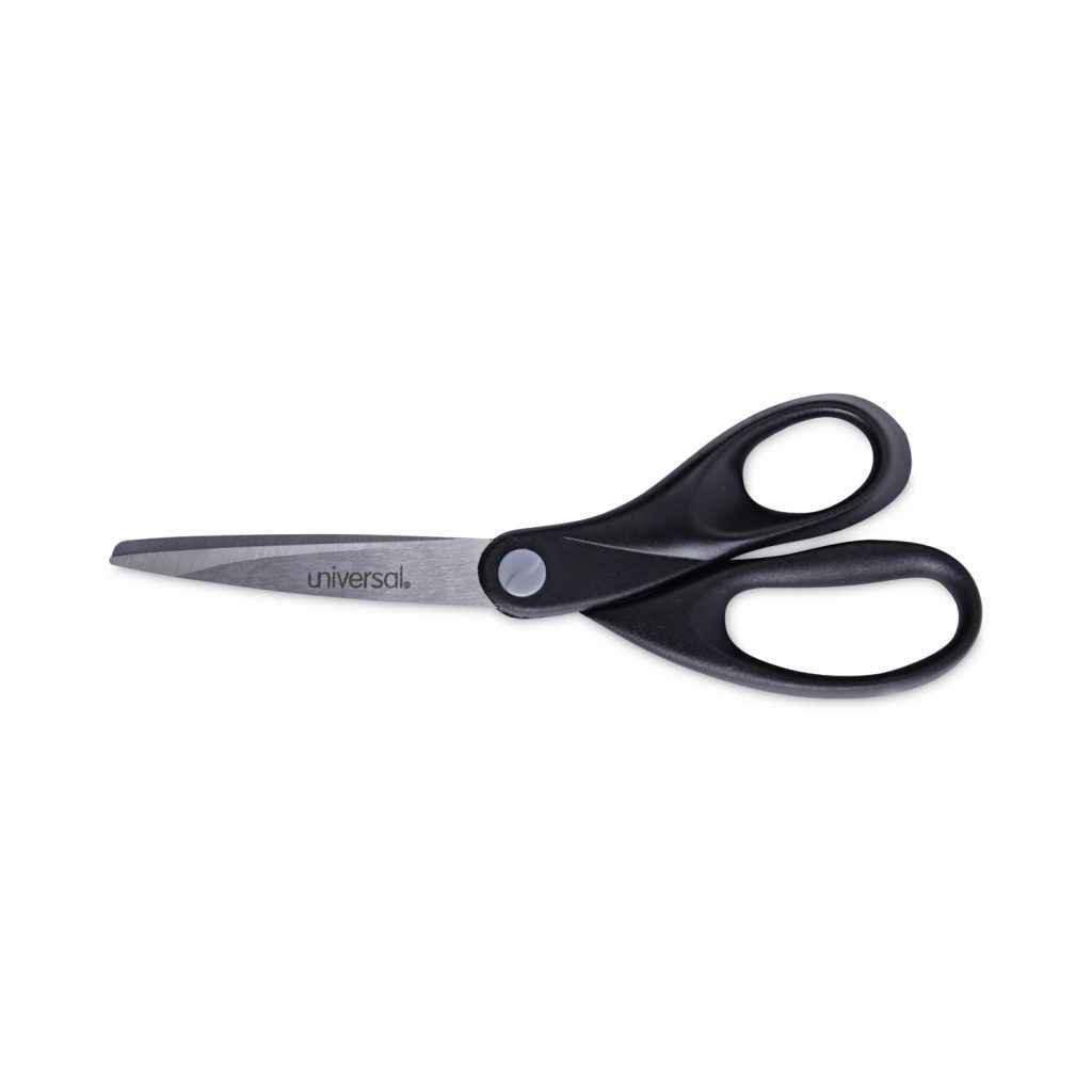 Stainless Steel Office Scissors, 8″ Long, 3.75″ Cut Length, Black Straight Handle