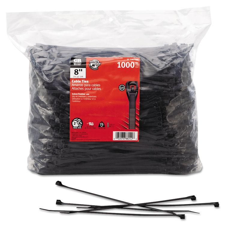 Patented DoubleLock design features teeth on both sides ensures strong, reliable performance. Temperature resistant between -40F and 185F. Durable nylon 6-6 material. Cable Management Type: Tie; Closure: DoubleLock; Color(s): UV Black; Length: 8″.