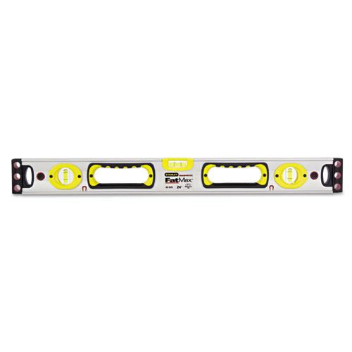 STANLEY 43-525 Box Beam Level, 24 in L, 3 -Vial, 2 -Hang Hole, Magnetic, Aluminum, Silver/Yellow