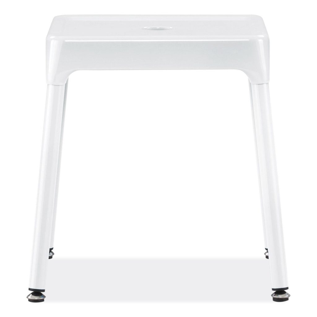 Steel Guest Stool, Backless, Supports Up to 275 lb, 15″ to 15.5″ Seat Height, White Seat/Base, Ships