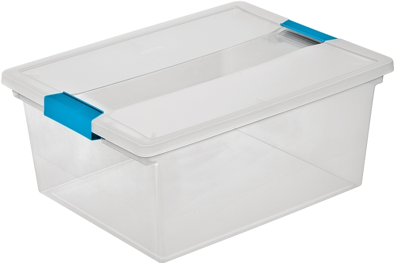 Sterilite 19658604 Clip Box, Plastic, Blue Aquarium/Clear, 14 in L, 11 in W, 6-1/4 in H
