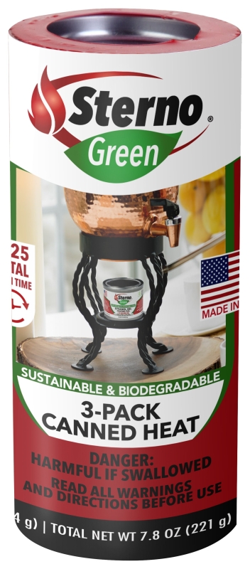 Sterno Cooking Fuel, Net Content: 2.5 oz, Can, Burn Time: 45 min, Odor/Scent: Odorless, Includes: (3) Cooking Fuels