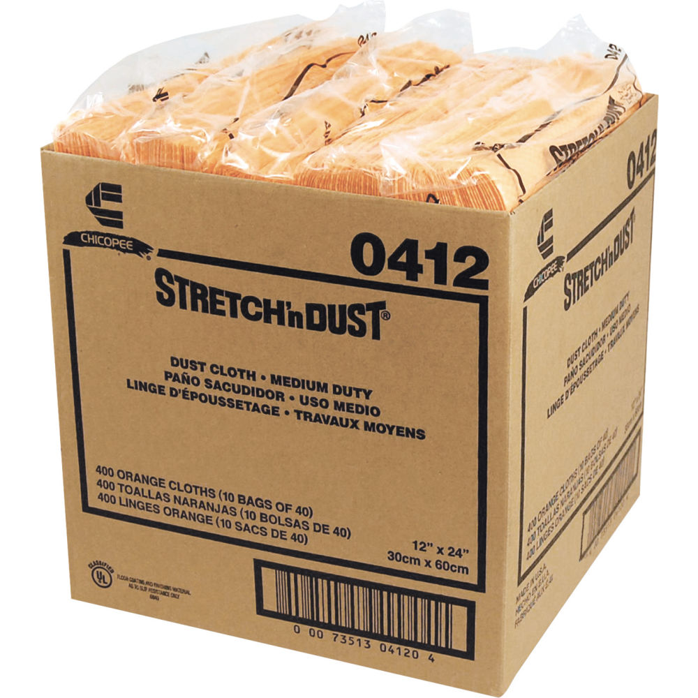 Help keep your home and office free from dust with these stretchable cloths. Made with dust-catching fibers and mineral-oil treated to provide you with increased dust pickup and enhanced finishwithout the lint or residue. The Microban antimicrobial protection inhibits the growth of bacteria on the product. Innovative design requires you to simply stretch cloths before use to activate the dust-catching pockets. Yellow/Orange color. Application: General Purpose; Material(s): Cloth; Number of Plies: 1; Color(s): Yellow.
