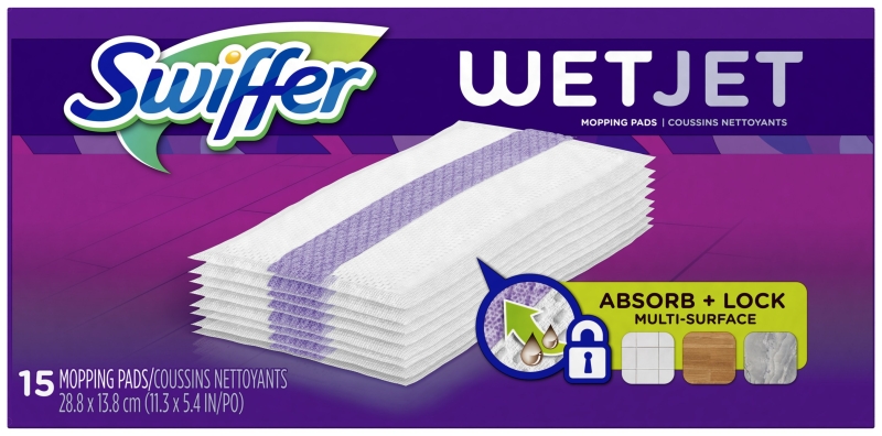 SWIFFER WetJet wood cleaning pad was specifically engineered with hardwood floors in mind. The soft texture of the microfiber-like cleaning pads are gentle on hardwood floors. The Absorb + Lock strip locks away dirt and grime for good.