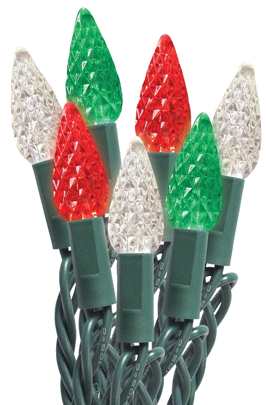 Sylvania String Lights, LED, C6, TRDNL R/G/W, 50 Ct