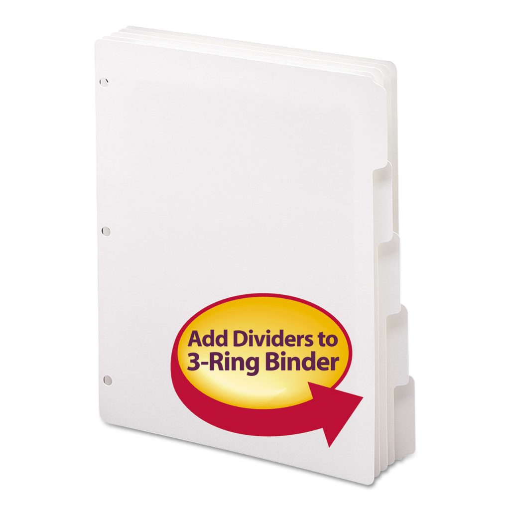 Three-Ring Binder Index Divider, 5-Tab, 11 x 8.5, White, 1 Set