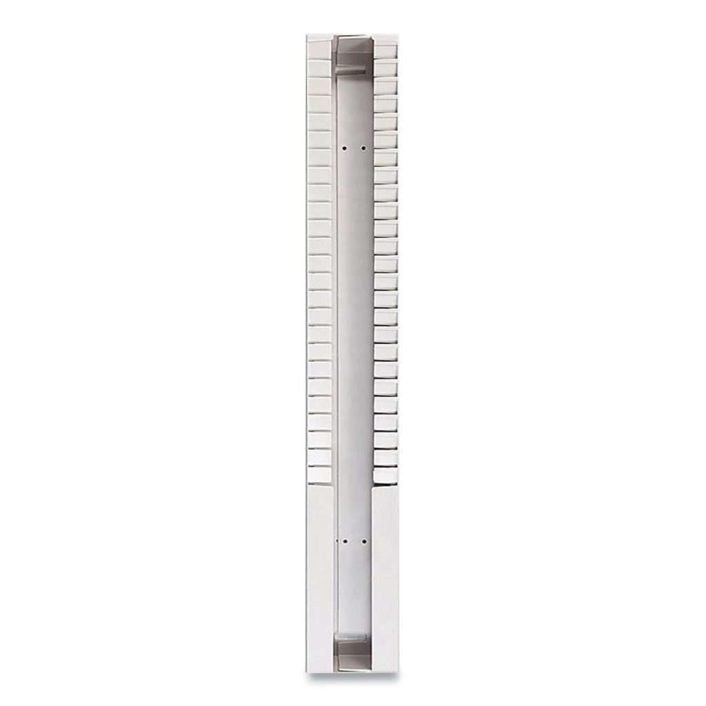 Put this time card rack near entryways to provide reminders for employees to track their time. The mountable design and lightweight construction make it easy to secure to a wall, door, or other surface, while the 25 pockets offer plenty of space. This Pyramid time card rack is adjustable, so you can customize it to fit the needs of your business. Adjusts to hold cards between 2.5″ to 5″ in width and 2.25″ to 10″ in height. Mounting hardware included. Made of lightweight durable plastic. Color(s): Light Gray; Overall Width: 5″; Overall Depth: 2.38″; Overall Height: 31.5″.