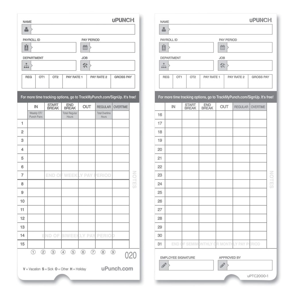 Time Clock Cards for uPunch HN4000, Two Sides, 7.37 x 3.37, 50/Pack