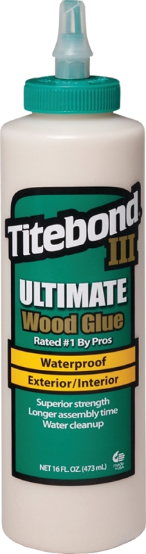 Titebond III ultimate wood glue is the first one-part, water cleanup wood glue ever offered that is proven waterproof. The waterproof formula passes the ANSI/HPVA Type I water resistance specification and offers superior bond strength, longer open assembly time and lower application temperature. Titebond III is non-toxic, solvent-free and cleans up with water – safer to use than traditional waterproof wood glues. It provides strong initial tack, sands easily without softening and is FDA approved for indirect food contact (cutting boards). The ultimate in wood glues – ideal for both interior and exterior applications.